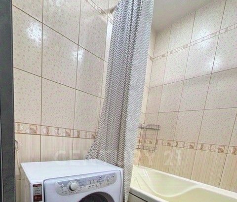 В ванной комнате установлена вместительная ванна, стиральная машина.