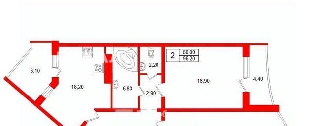 2-к кв. Санкт-Петербург Планерная ул., 63к1 (96.2 м²)