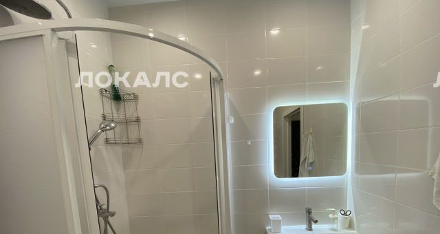 В ванной комнате теплый пол, стиральная машина, зеркало с подсветкой.