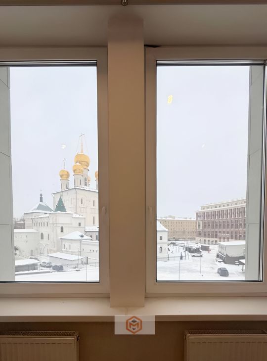 Планировка европейского уровня: большая кухня,изолированная спальня с выходом на застекленную лоджию с окнами во внутренний двор,вторая изолированная комната-гостиная с видом на собор, совмещённый сан-узел с душевой и коридор-прихожая.