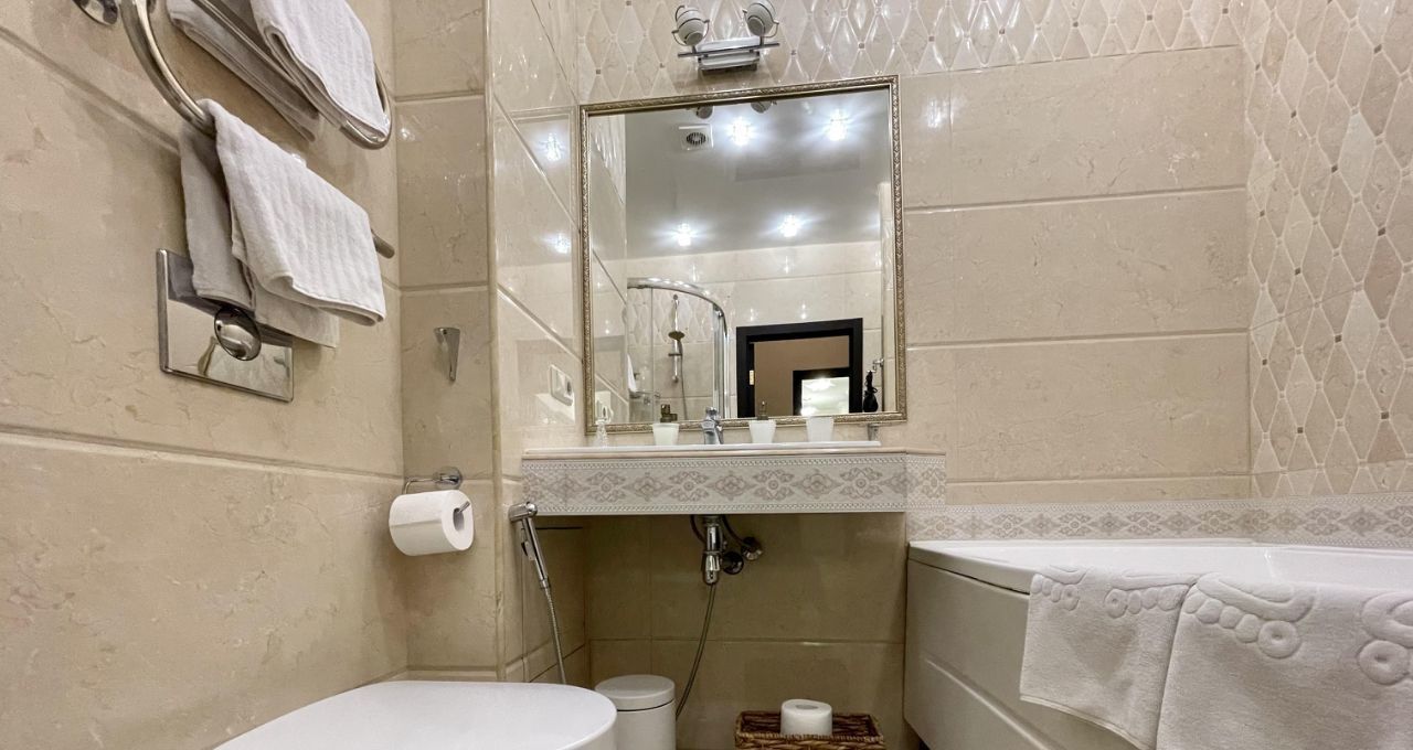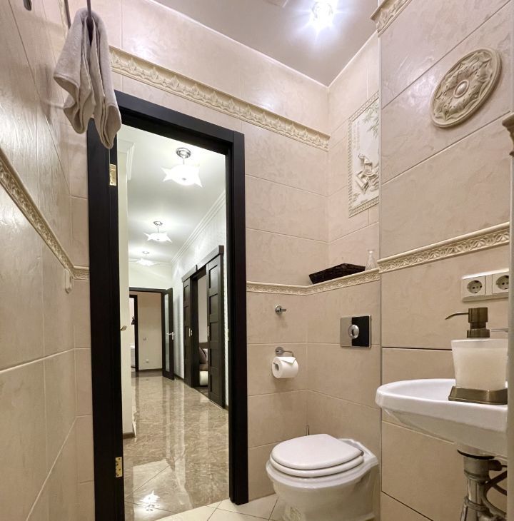 Оснащение: кондиционер, тёплый пол, вся необходимая бытовая техника: стиральная машина, посудомоечная, холодильник, печь свч, духовой шкаф, варочная панель.