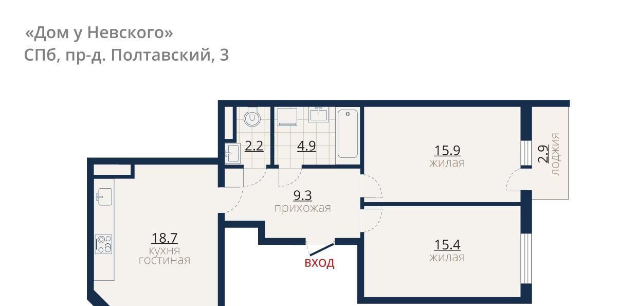 2-к кв. Санкт-Петербург Полтавский проезд, 3 (65.8 м²)