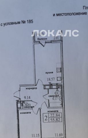 2-к кв. Санкт-Петербург пос. Парголово, ул. Архитектора Белова, 5к1 (56.4 м²)