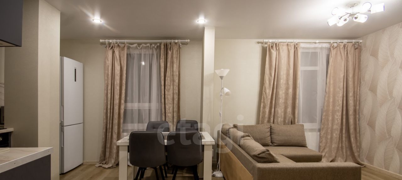 Большая кухня-гостиная с раскладывающимся диваном, 2 изолированных спальни, совмещенная ванная комната.