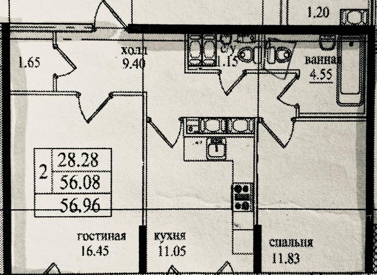 2-к кв. Санкт-Петербург пос. Парголово, проезд Толубеевский, 32 (54.0 м²)