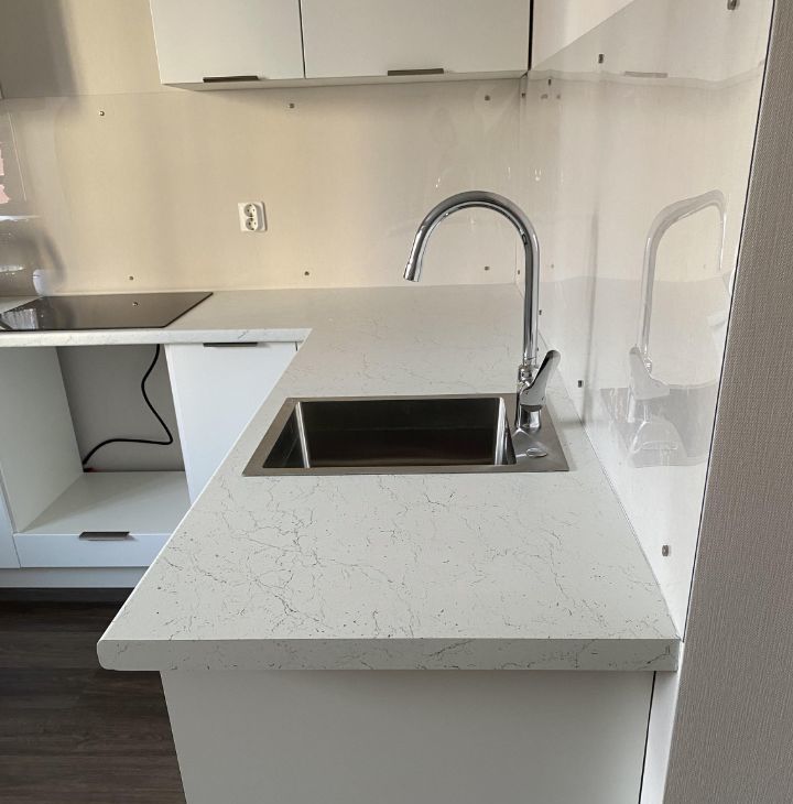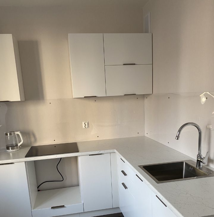 Установлен новый кухонный гарнитур и варочная панель.