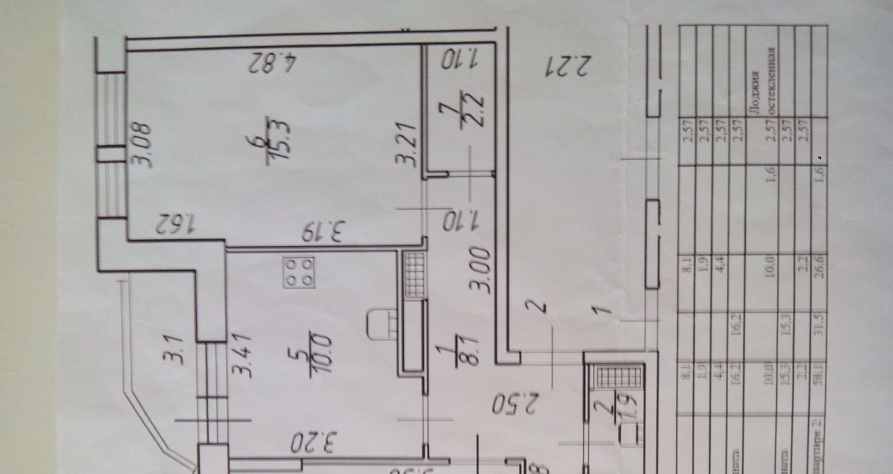 Кухня 10 м2, комнаты 16,2 + 15,3 м2.