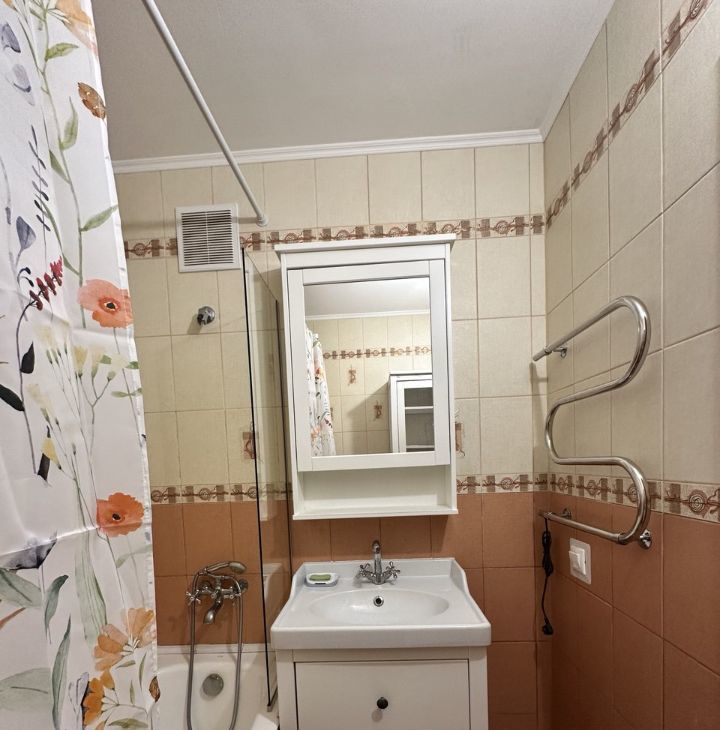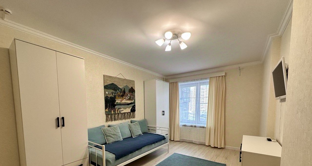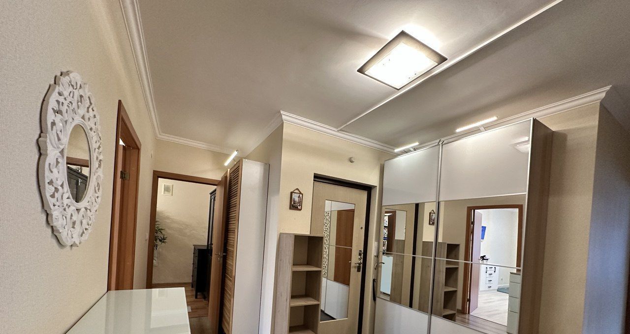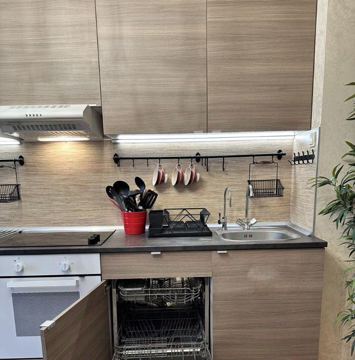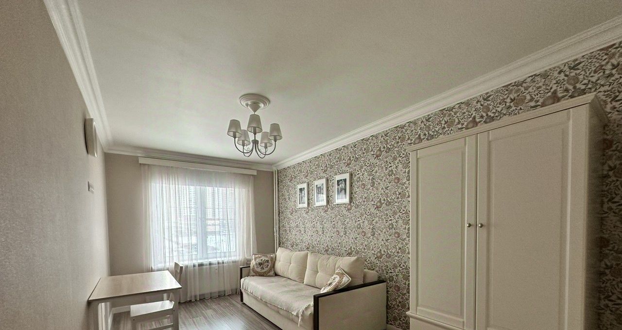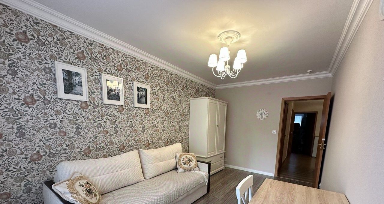 В квартире сделан современный евроремонт, установлена мебель как в комнатах, так и на кухне. Из техники есть все необходимое для комфортной жизни: холодильник, посудомоечная и стиральная машины, телевизор. Санузел раздельный, ванна. Окна выходят во двор, что обеспечивает тишину и спокойствие. Высота потолков — 2.6 метра, что создает ощущение простора.