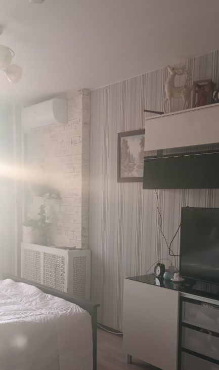 В квартире свежий ремонт из качественных материалов. Пол выложен плиткой по всем "общим зонам":кухня, прихожая, туалет, ванная комната. Кухня и прихожая стены оформлены декоративным кирпичем и акустическими панелями.В квартире предусмотрена гардеробная. Мебель и бытовая техника все остаётся. В комнатах мебель " ИКЕА".Уютная, большая и полностью оборудованная кухня с гарнитуром из берёзы и большим круглым столом!