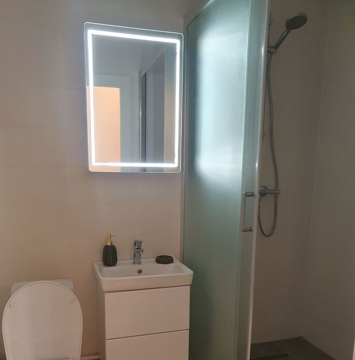Квартира сдаётся впервые. в одной комнате мебели нет, во второй комнате спальное место диван. 2 сан. узла с душевой и ванной. Просторная кухня-гостинная со всей необходимой бытовой техникой.