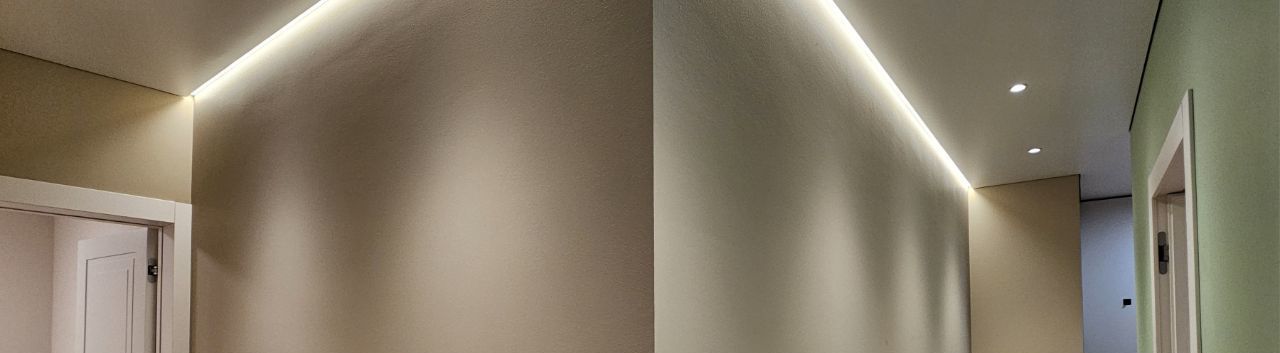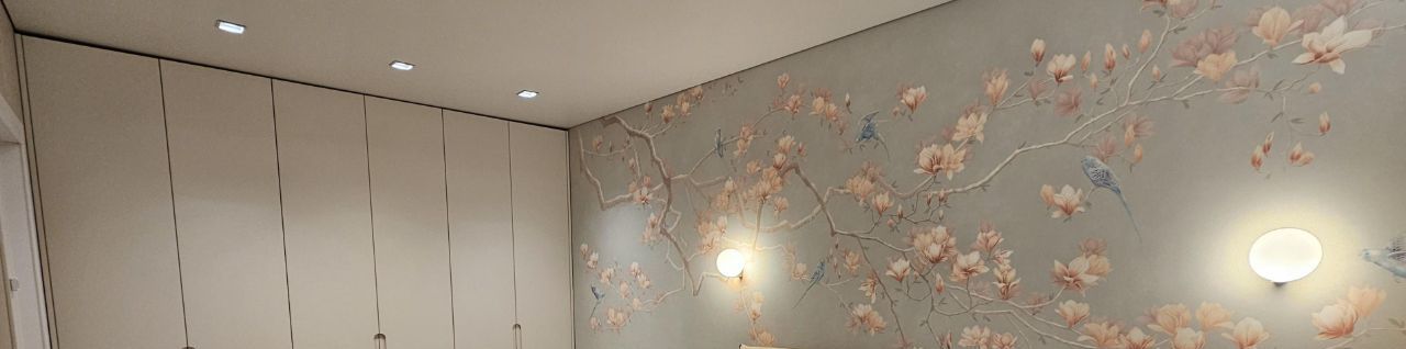 По всей квартире продумано освещение: скрытая подсветка, точечные светильники, бра над кроватью — вечером создаётся мягкий, расслабляющий свет.