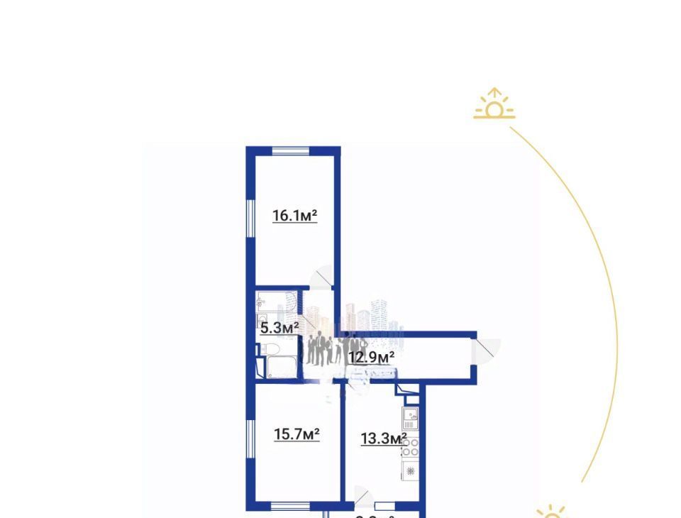 2-к кв. Санкт-Петербург пос. Парголово, ул. Тихоокеанская, 1к1 (63.3 м²)