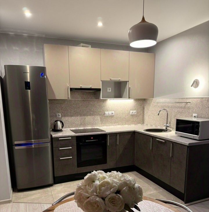 Квартира имеет евроремонт и полностью готова для комфортного проживания. В наличии вся необходимая техника: холодильник, посудомоечная машина, телевизор и стиральная машина. Удобная планировка позволяет разместить мебель по вашему усмотрению. Санузел раздельный, выполнен в современном стиле.