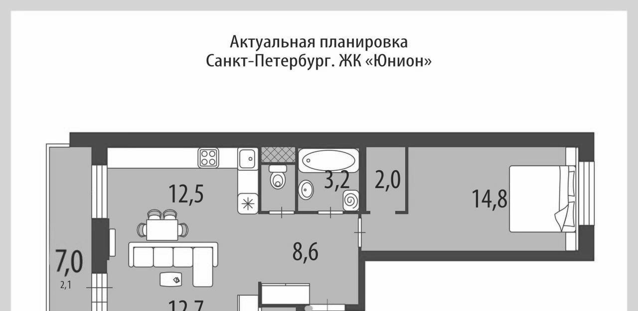 Предлагается к продаже просторная квартира формата евро-2 площадью 56,4 м² в жилом комплексе комфорт-класса Юнион.