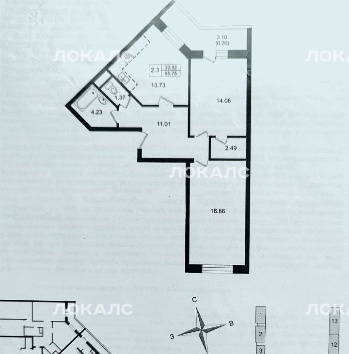 2-к кв. Санкт-Петербург пос. Шушары, пер. Вилеровский, 6 (65.8 м²)