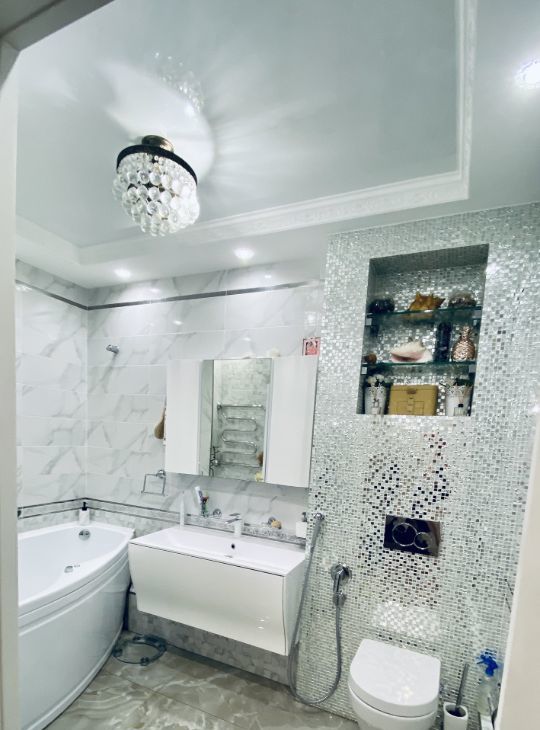 На полу итальянский керамогранит, в детской натуральная паркетная доска, в спальне ламинат. В квартире нет натяжных потолков, только штукатурка и гипрок. Окна от застройщика и батареи поменяны. Стоят фильтра на воду на каждый стояк. Установлен боллер.