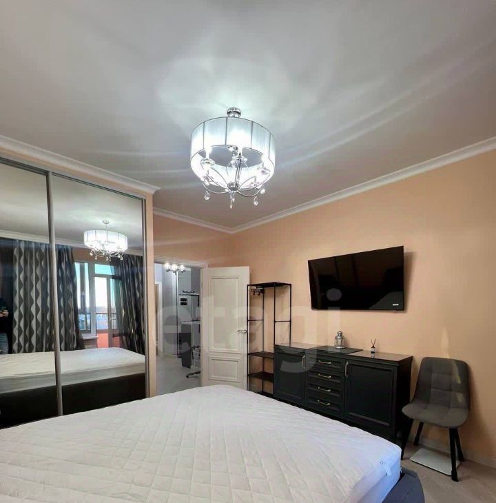 Жилье готово к заселению, в нем присутствует вся необходимая мебель, включая двуспальную кровать с ортопедическим матрасом, а в каждой комнате установлены смарт-телевизоры.