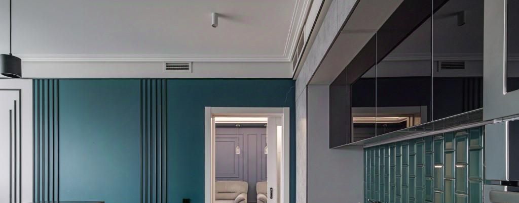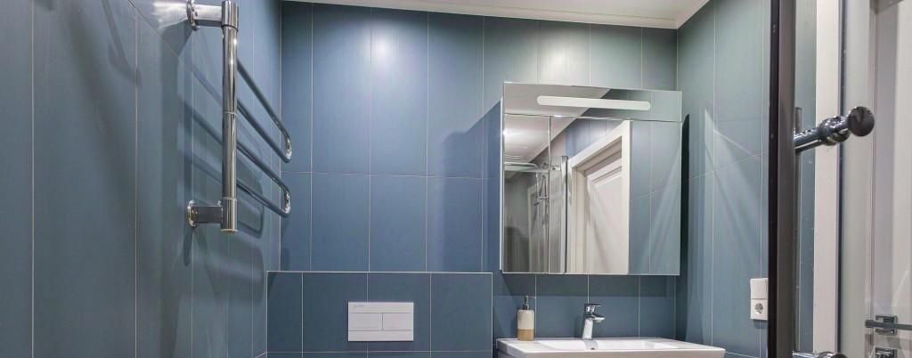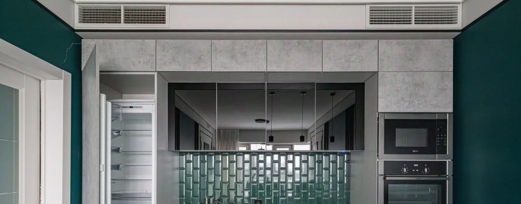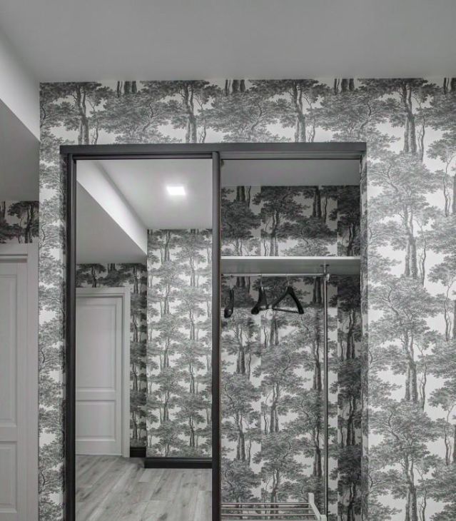 При входе в квартиру вас встречает роскошная по своим размерам прихожая, где можно разместить все необходимые вещи. Встроенная гардеробная с местами хранения и зеркальными дверями от пола до потолка очень вместительная и скрывает все лишнее, убирая визуальный шум. Сразу здесь удобно расположен первый санузел, который удобно использовать как гостевой. Здесь же расположена стиральная машина.