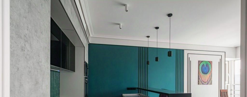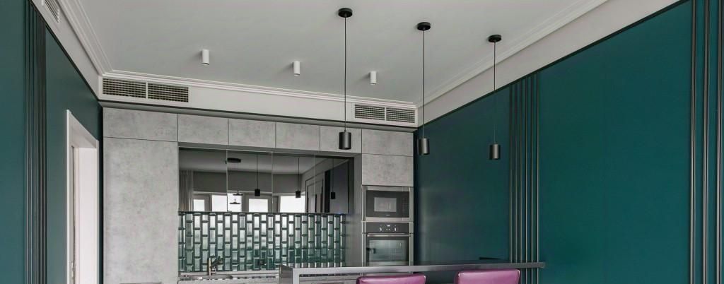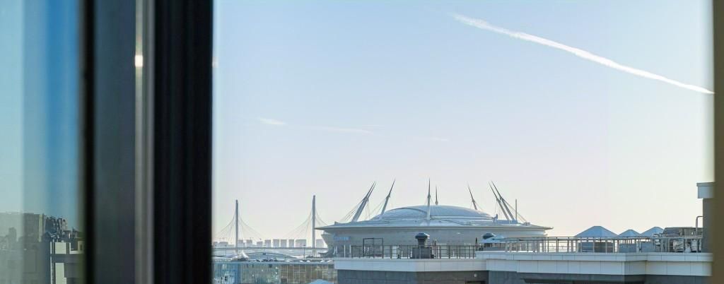 Кухня правильной прямоугольной формы, обеденная зона с большим столом располагается прямо у окна, откуда открывается прекрасный вид на Зенит-арену. Здесь будет удобно не только принимать пищу самостоятельно, но и приятно проводить время с гостями.