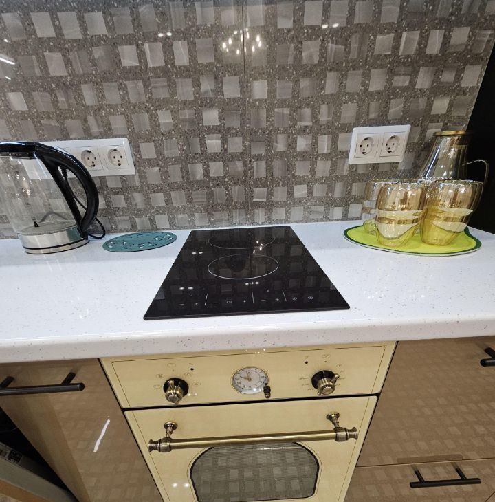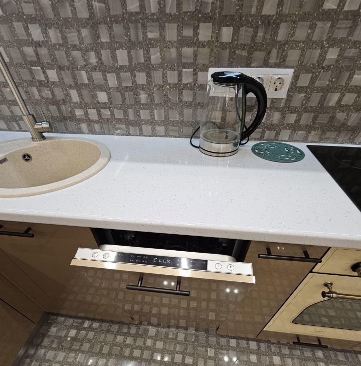 - Встроенная техника: посудомоечная машина, холодильник, духовой шкаф, варочная панель