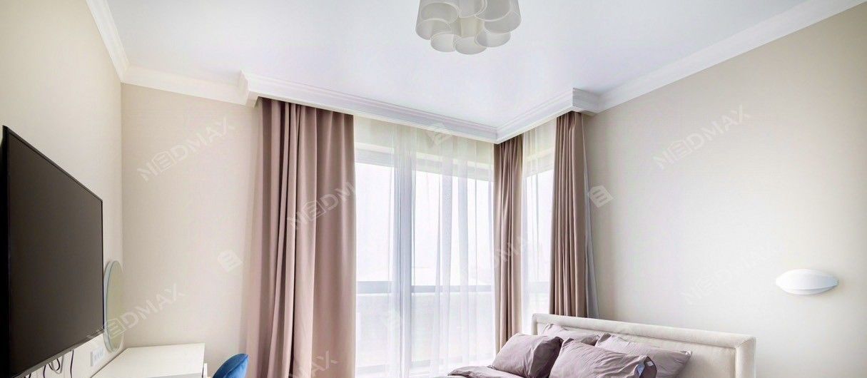 В квартире выполнен качественный евроремонт по индивидуальному дизайн-проекту, при отделке использовали дорогие отделочные материалы. Высокие потолки и панорамное остекление создают ощущение простора и обилие света и воздуха.