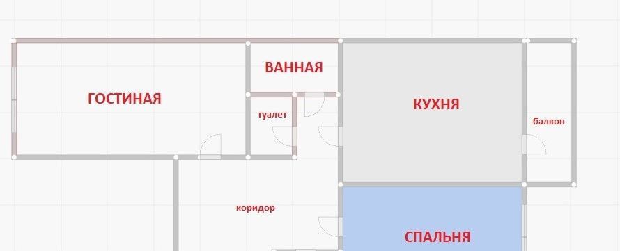 Комнаты изолированные: кухня 18 кв.м., гостиная 17 кв.м., спальня 16 кв.м.