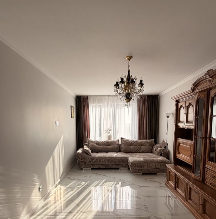 Сдаётся уютная двухкомнатная квартира с евроремонтом, площадь квартиры составляет 63 кв. м, из которых жилая занимает 35 кв. м, а площадь кухни — 10.8 кв. м. Квартира находится на 7 этаже 10-этажного дома, окна выходят во двор, что обеспечивает тишину и комфорт. Высота потолков — 2.6 метра.