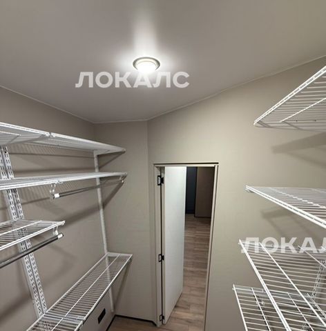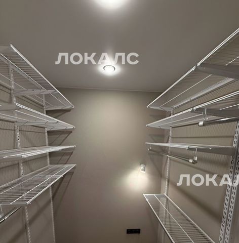 Вся мебель и техника встроенная, есть вместительная гардеробная и встроенный шкаф.