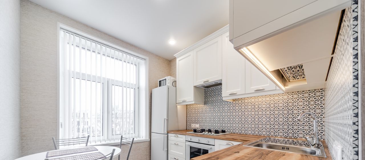 Кухня полностью укомплектована — газовая плита с духовкой, холодильник, микроволновка, вытяжка, вся необходимая посуда. Раздельный санузел с душевой кабиной, стиральной машиной и бойлером — горячая вода есть всегда, в том числе в сезон отключений. Интернет в квартире есть. Утюг, пылесос, гладильная доска также присутствуют. Собственник лояльный, готов общаться и договариваться на любые темы.
