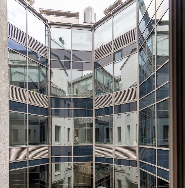 Внутренней двор закрыт от посторонних, придомовая территория находится под круглосуточной охраной и видеонаблюдением.