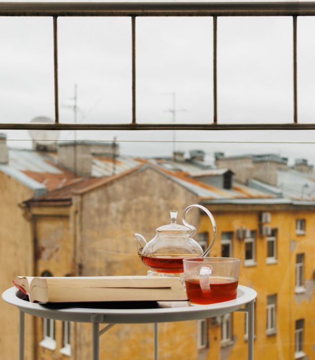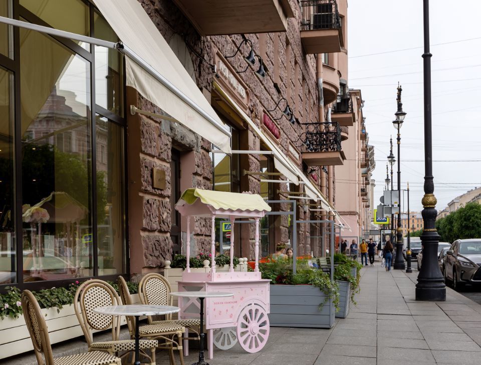 С балкона открывается боковой вид на Неву и романтичные питерские крыши.