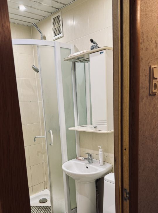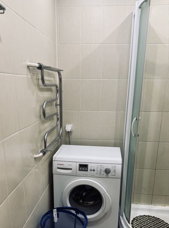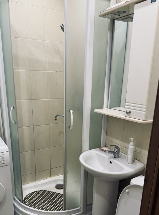 В квартире есть рабочий холодильник,духовка,газовая плита,телевизор,стиральная машина и душ. Есть двухместный раскладной диван.
