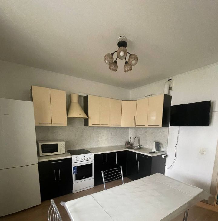 В квартире есть все необходимое для жизни: мебель (кровать, диван раскладной, шкафы, системы хранения), кухня с техникой, телевизоры, стиральная машина.