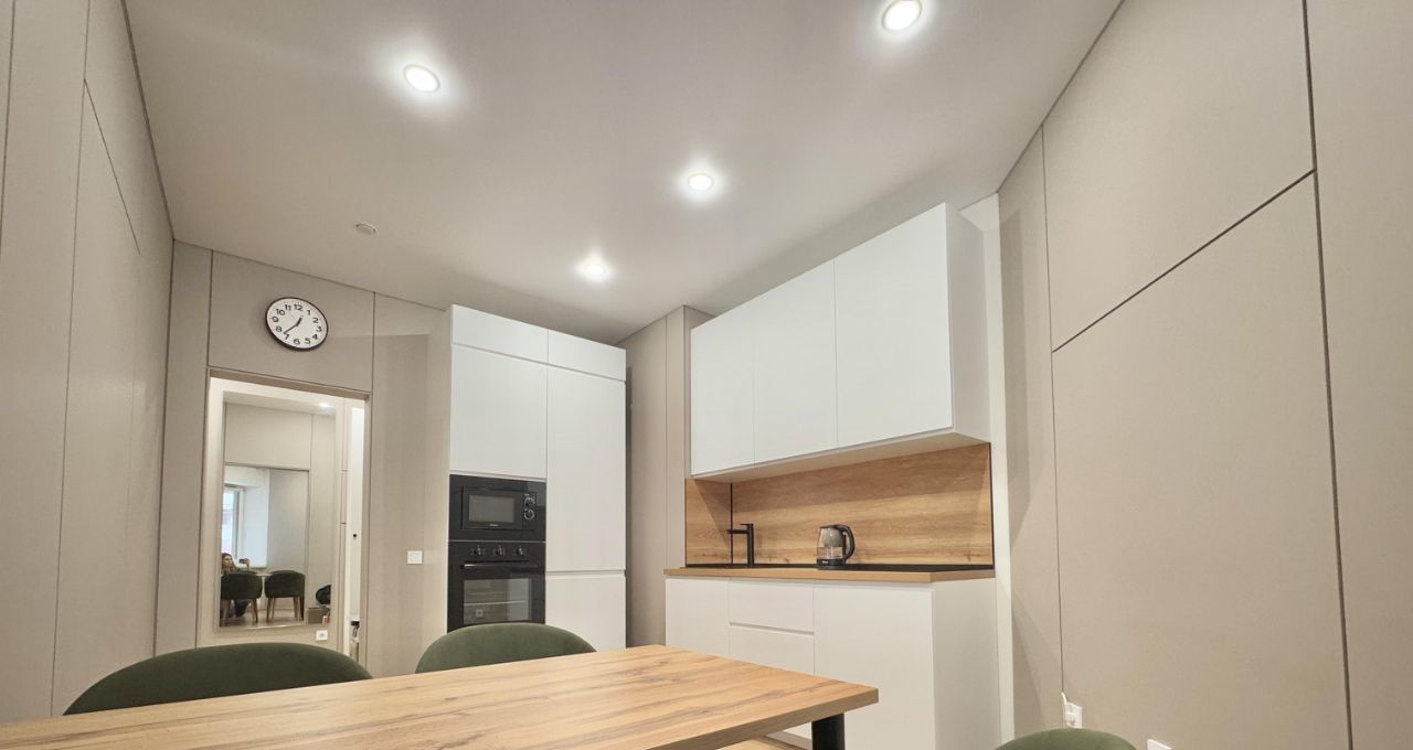 Полностью укомплектованная кухня: кухонный гарнитур, стол, стулья, холодильник, варочная поверхность, духовой шкаф;