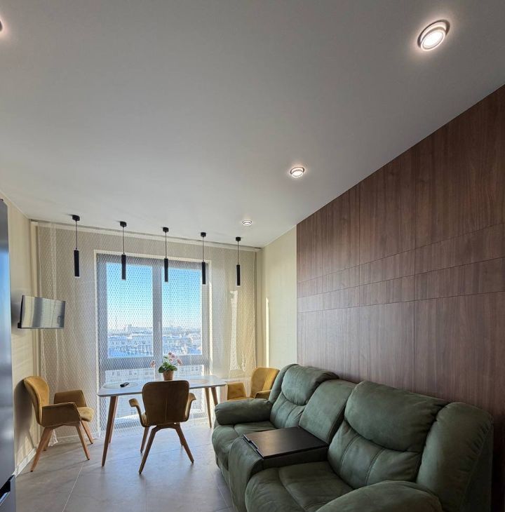Продается стильная двухкомнатная квартира с дизайнерским ремонтом в доме 2024 года постройки. Общая площадь квартиры составляет 47 кв. м, жилая площадь — 24 кв. м, кухня — 14 кв. м. Квартира расположена на 11 этаже 12-этажного дома. Высота потолков — 2.75 метра, что придает помещению дополнительный объем и свет. Окна выходят на улицу, прямой вид на Лахта центр и парк ,поэтому в квартире всегда светло и уютно.