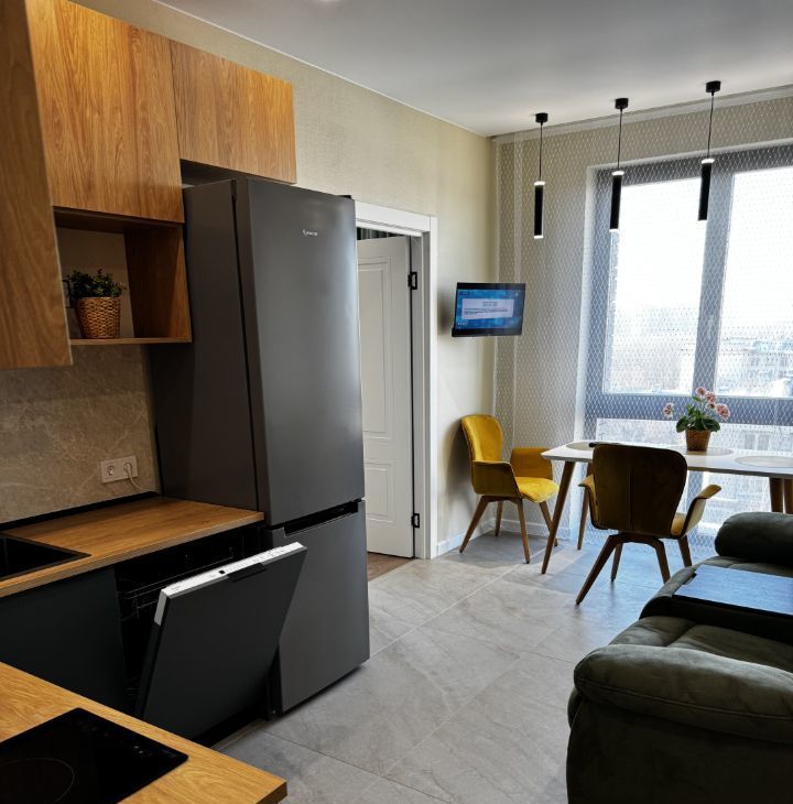 В квартире выполнен дизайнерский ремонт с продуманной планировкой. Просторная кухня площадью 14 кв. м позволяет не только готовить, но и собираться всей семьей за обедом. Современная техника и стильная мебель делают это пространство комфортным и функциональным. В квартире есть отдельный санузел, оформленный в современном стиле. Дополнительное удобство обеспечивает наличие лоджии, где можно организовать зону отдыха или рабочее место.