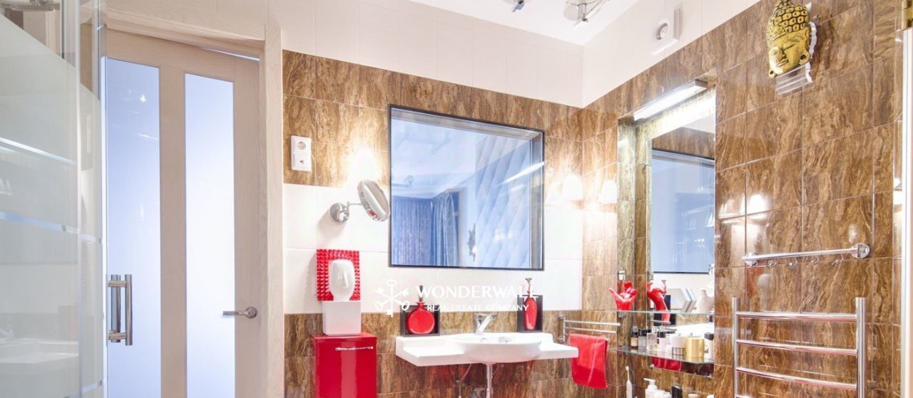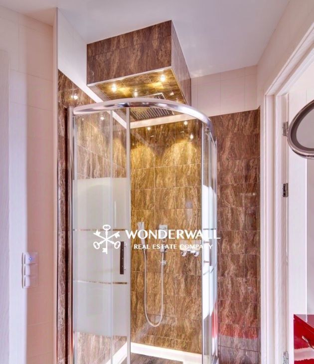 Квартира оснащена сауной, душевой, мебелью и всей бытовой техникой, необходимой для комфортной жизни (посудомоечная машина, холодильник, кофеварка, стиральная машинка, телевизор и пр.). В квартире выполнен дизайнерский ремонт.