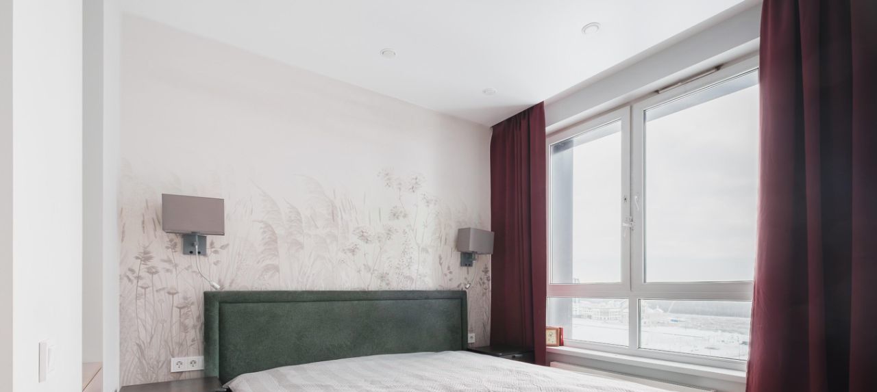 Продается светлая квартира современной планировки с 2 спальнями и пространством кухни-гостиной в 26 квм с видом на финский залив в ЖК Легенда Героев.