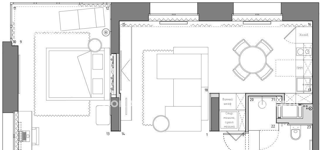 Огромное количество мест хранения вещей все зеркала и панели в квартире открываются(скрытые шкафы)