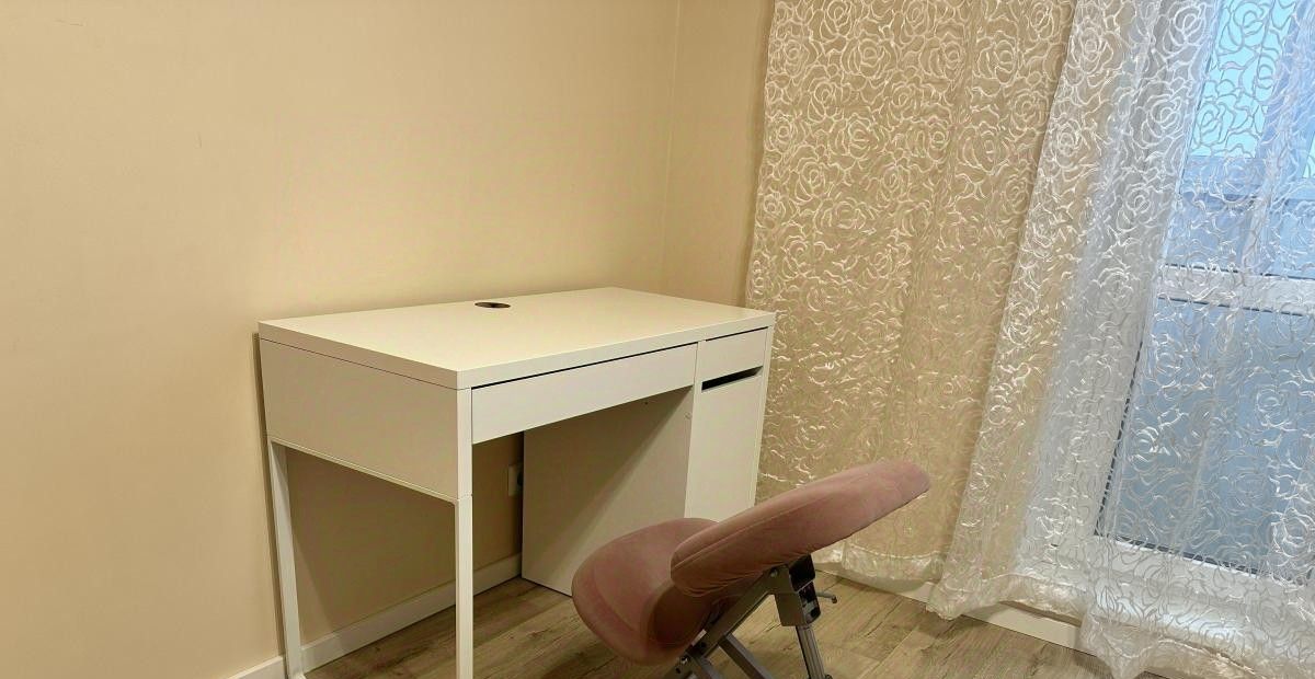 Просторная теплая детская комната оборудована для учебы и отдыха . Нейтральные обои , письменный стол и ортопедический стул способствуют продуктивной учебе или творческой деятельности. Ортопедический матрас для комфортного сна . Для хранение вещей удобный шкаф и полочки.