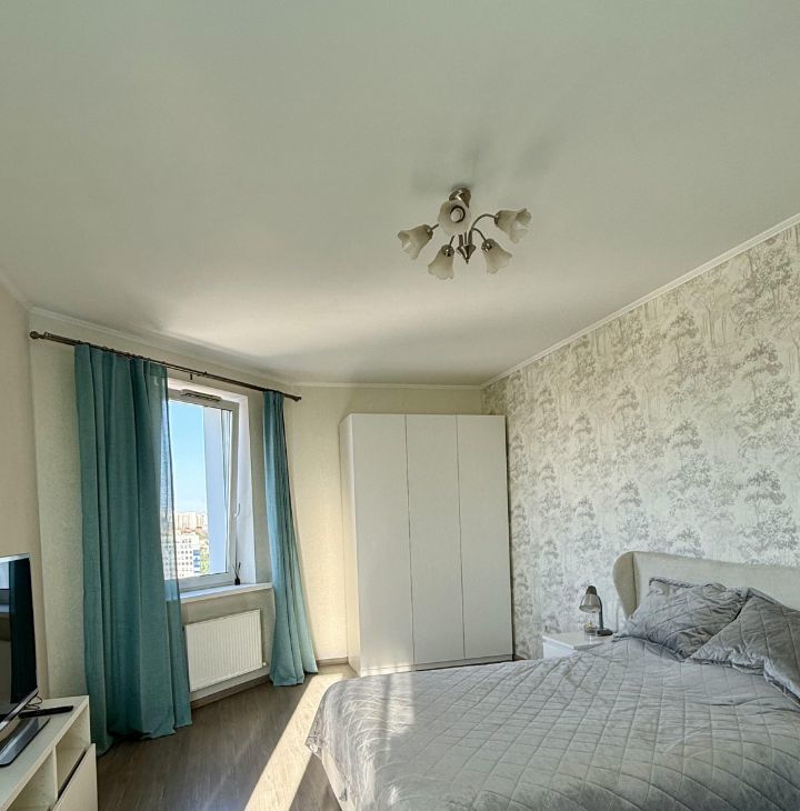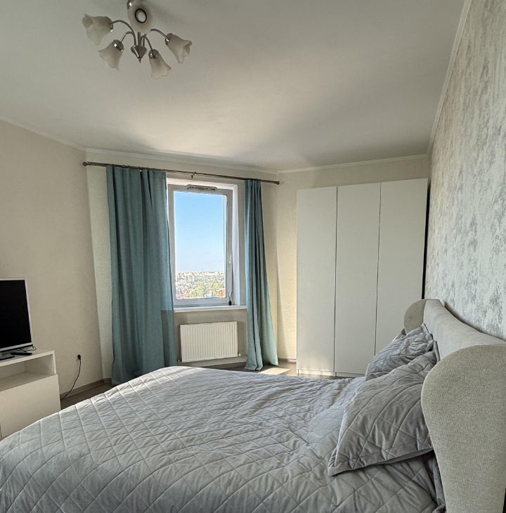 во второй комнате (12 кВ м) стоит комфортная кровать 160 на 200 (Аскона с классным матрасом), туалетеый столик, шкаф.