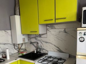 В квартире есть всё необходимое для проживания: двухспальная кровать, будет собран комод, стиральная машинка, микроволновая печь, вместительный холодильник, кухонный гарнитур.