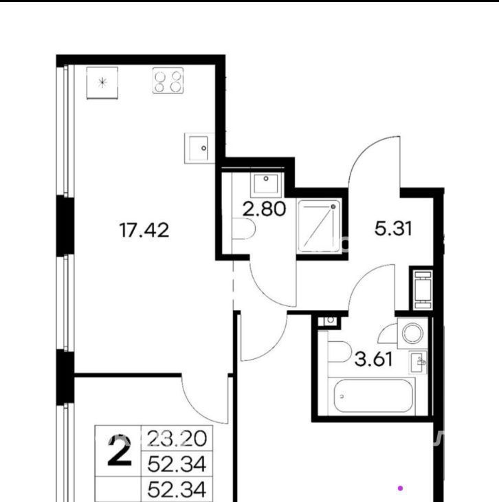 2-к кв. Санкт-Петербург просп. Крузенштерна, 13 (52.34 м²)