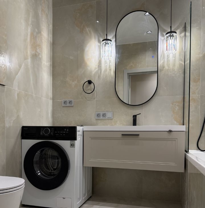 • Холодильник, стиральная машина, продуманное освещение, много розеток.