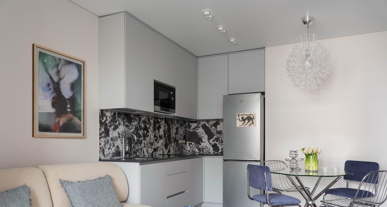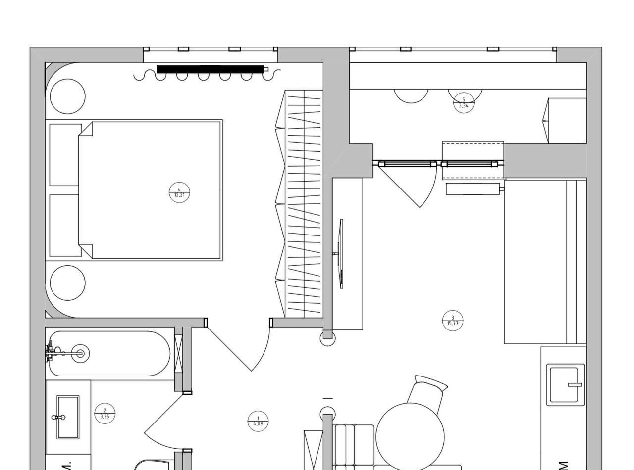 Общая площадь квартиры — 38 кв. м, а кухня 15,77 кв. м.
