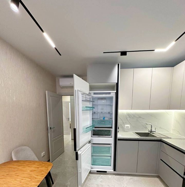 Квартира оснащена техникой высоко класса, включая посудомоечную машину и кондиционер. Тёплые полы . По договоренности возможна домебелировка.