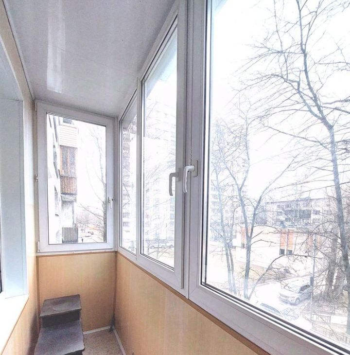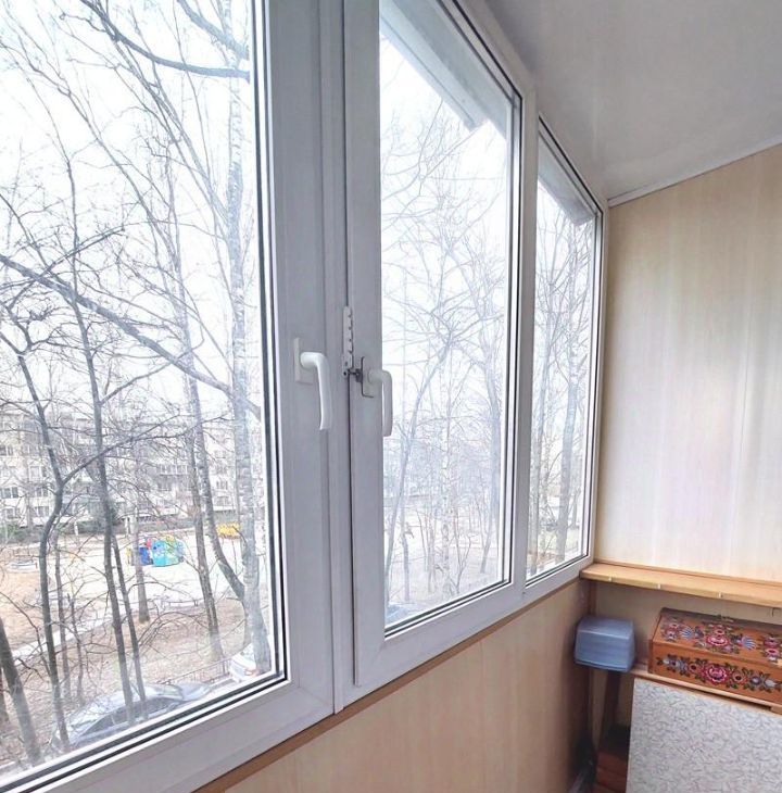 Застеклённый балкон, стеклопакеты, окна-зелёный двор.
