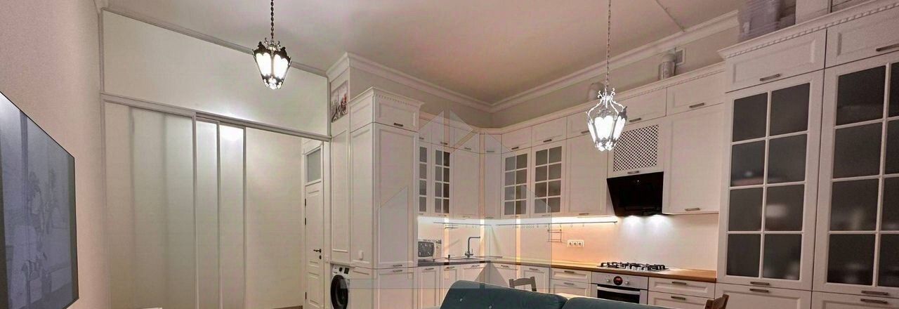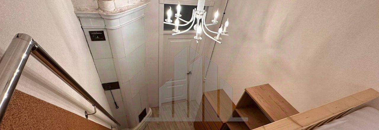В квартире есть винтажные бронзовые светильники. Они добавляют особый шарм и подчеркивают высоту потолков.