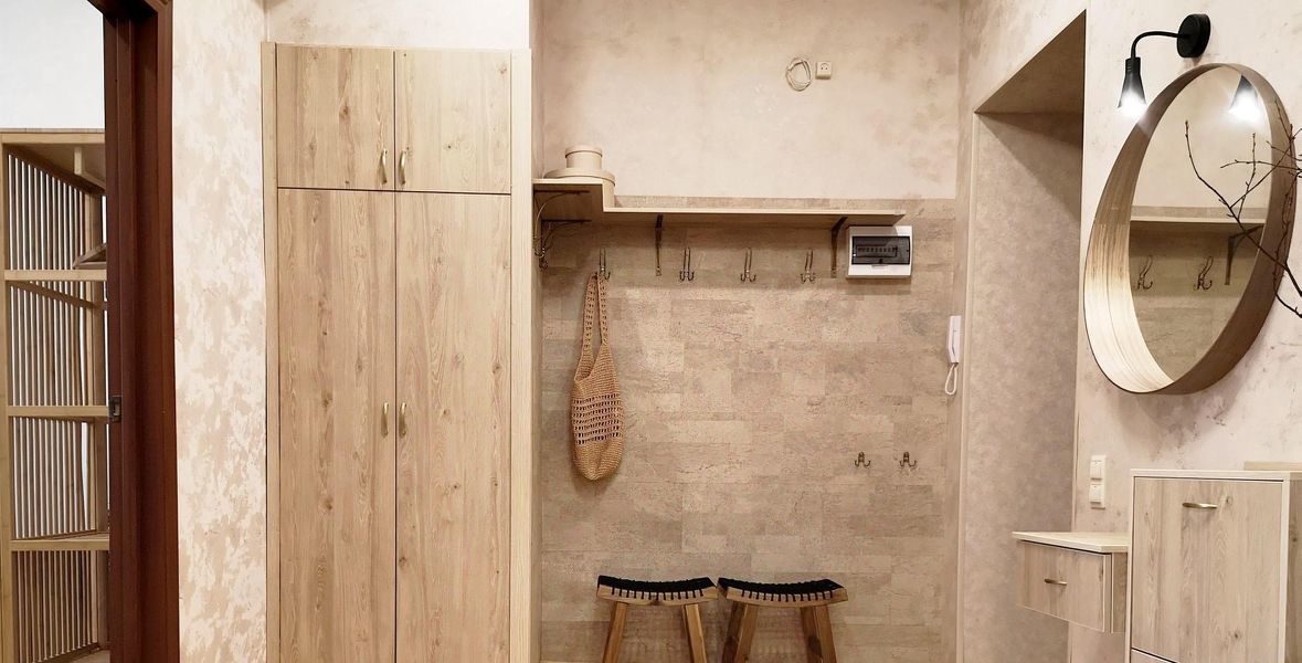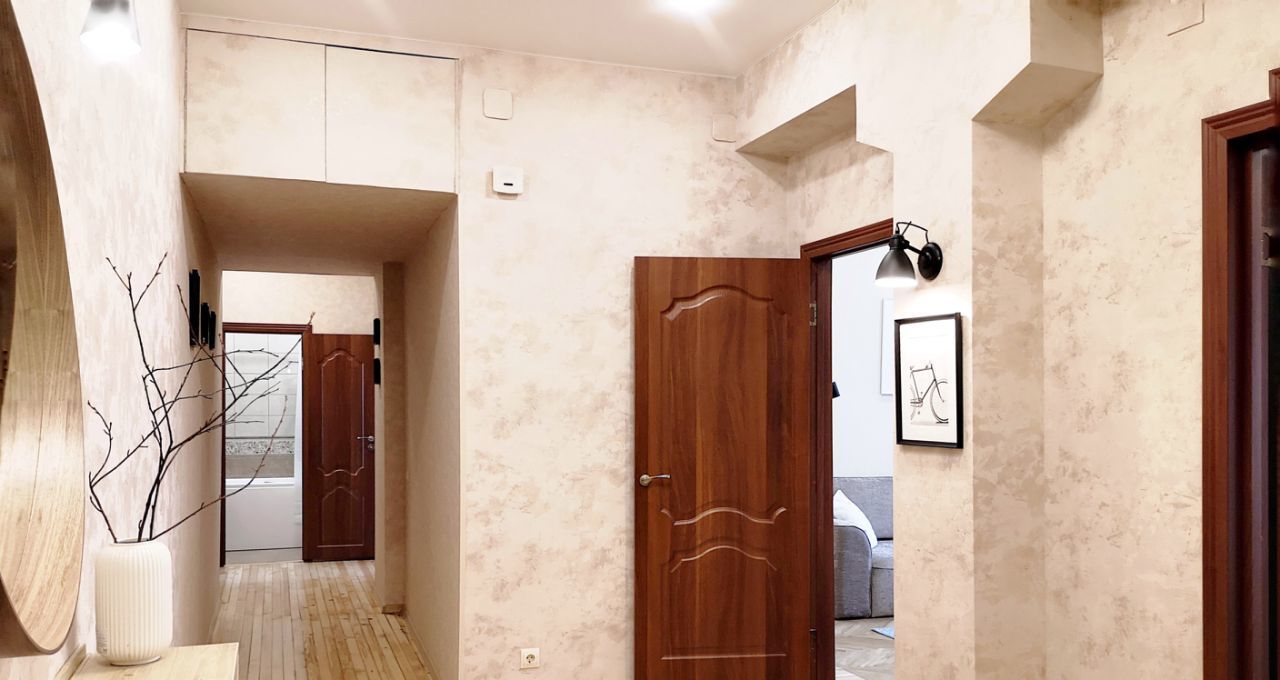 В доме был сделан капремонт, полностью заменены все коммуникации, подъезд чистый и светлый, с сохранившейся оригинальной метлахской плиткой. Квартира отражает внимание к деталям и любовь к городу и району.