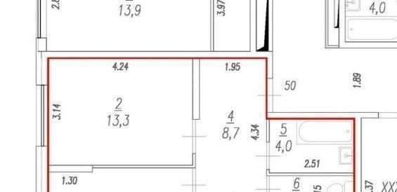 2-к кв. Санкт-Петербург просп. Маршала Блюхера, 7к2 (61.0 м²)